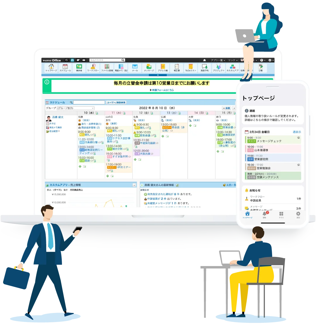 トップページその日の予定や、自分宛の連絡・申請などをまとめて確認できます。