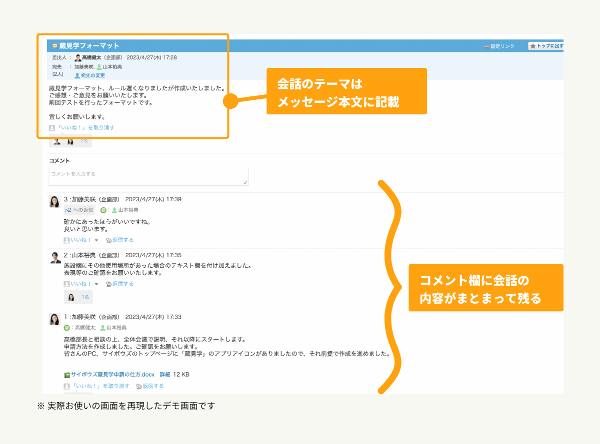メール特有のお作法を気にする必要がない点も気に入っています!活用したのは、サイボウズ Officeの