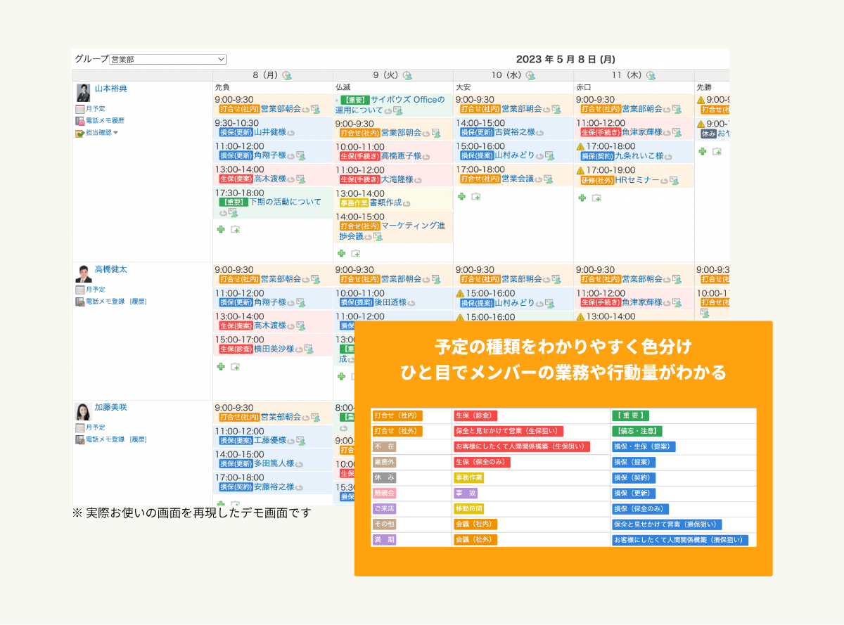 一目でわかるように- スケジュールから「誰が、どんな行動をしているか」がわかる。